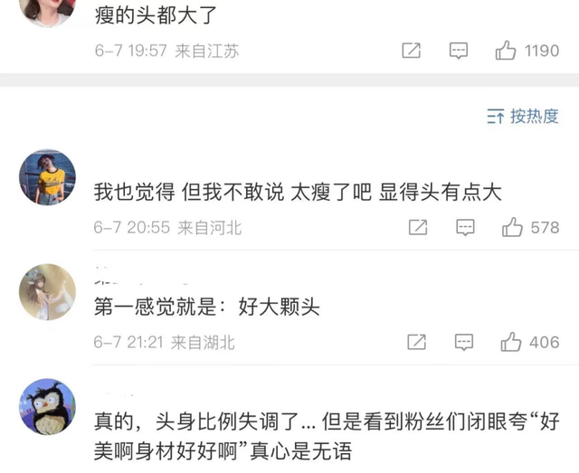 从这段视频呈现出的气象来看,说baby“瘦成纸片”真的极少王人不夸张。关联词这样极点的瘦并莫得给baby的秀丽诚心诚意,反而还拖了她的后腿。有不少网友在辩论区吐槽:“体魄太瘦显得头大,像个大头娃娃”,“头身比不相助,镜头里瘦本质只会更瘦”。